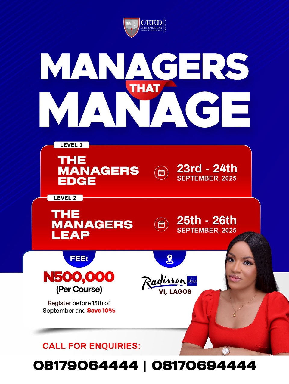 However, most managers are set up to fail by organizational leaders, they believe the best way to train a child to swim is to throw him into an ocean and let him figure out how to survive. Taking this approach to staffing managerial roles will not only lead to underperforming managers but will kill your business. The 2 Day course is designed to equip managers with what it takes to perform their functions well and to uncover managerial leaks that can sink organizational ships.